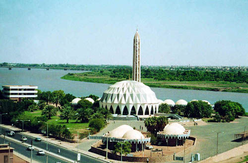 يعتبر من معالم السودان المميزة من حيث الموقع والتصميم ، فقد تم بناء المسجد على شكل صدفة عملاقة عند ملتقى النيلين الأبيض والأزرق شاطئ أم درمان ، علما بأن الفكرة والتصميم كانت مشروع تخرج طموح لطالب من كلية الهندسة والمعمار بجامعة الخرطوم في منتصف السبعينيات وكان هذا المبنى أول مبنى يشيد في السودان من قواطع الألمنيوم وبدون اعمدة رفع اذ يتصل السقف بالأرض مباشرة تماما كالصدف.