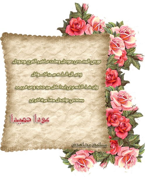 الطالبة الداعية 1 أرسلي تقرير عن المشاركة قامت بالمشاركة 11 مايو, 2010 وعليكم السلام ورحمة الله وبركاته،، عوداً حميداً أختي ولاء :) و مبارك لك الذرية أسأل الله أن يجعلها صالحة شارك هذه المشاركه رابط المشاركه شارك