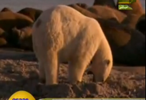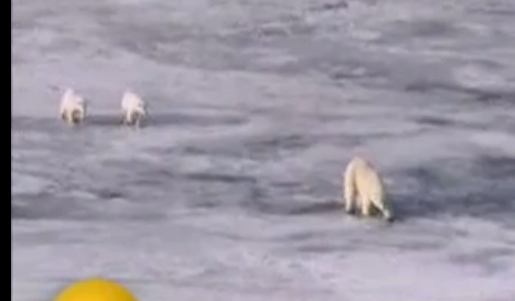 وهنا دبه بتبحث عن الطعام لاولادها تركتهم على الشاطىء لتبحث عن الطعام لهم