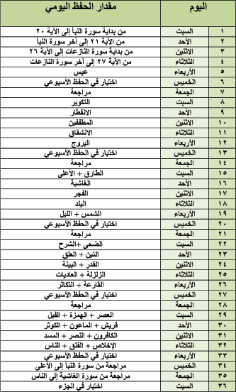 الاجزاء المراد حفظها : القران كاملا باذن الله