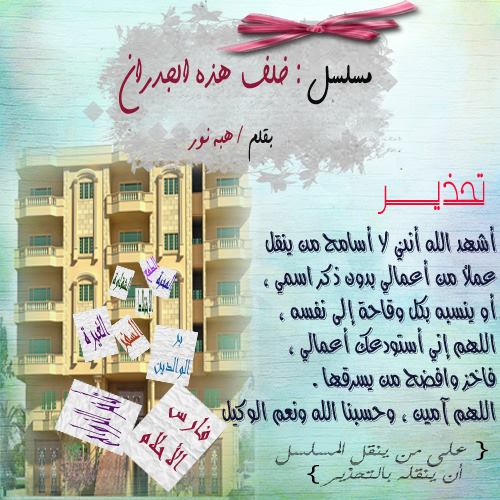 ساره أم حمزه 1041 أرسلي تقرير عن المشاركة قامت بالمشاركة 30 نوفمبر, 2014 هبة نور كاتبه فى التحديثات اخواتي الحبيبات متابعات رواية خلف هذه الجدران , نظرا لما تمر به بلادي الحبيبة مصر من احداث مؤسفة ونظرا لعودة الظلم للبلاد وقهر العباد ونظرا للحالة النفسية السيئة التي نمر بها , فأنا اعتذر عن نشر الحلقات هذا الأسبوع حزنا على دماء الشباب المهدرة وتضامنا مع كل القلوب الحزينة في بلادي , عذرا حبيباتي , التقيكم الأحد القادم بمشيئة الرحمن الذي نرجوا رحمته 3 شارك هذه المشاركه رابط المشاركه شارك