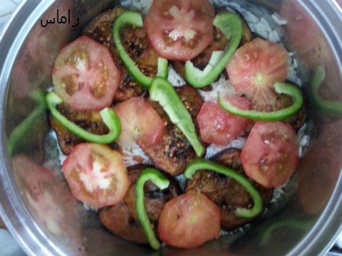 طبقة باتنجان طبقة رز طبقة بندورة وحر حلو