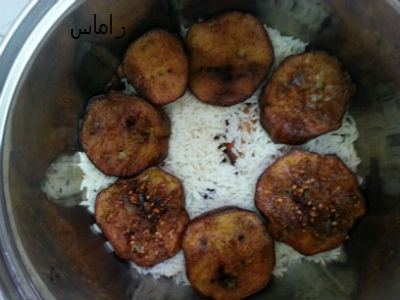 رغم انها غريبة بالنسبه لى حكاية الباتنجان مع الرز بس شكل الطبق يشجع على التطبيق :)
