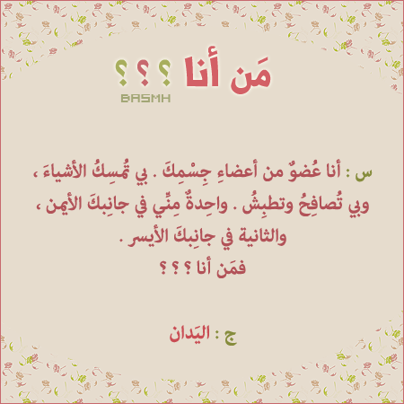 وهِيَ عبارة عن أسئلةٍ عن بَعض أعضاءِ الجِسْم .